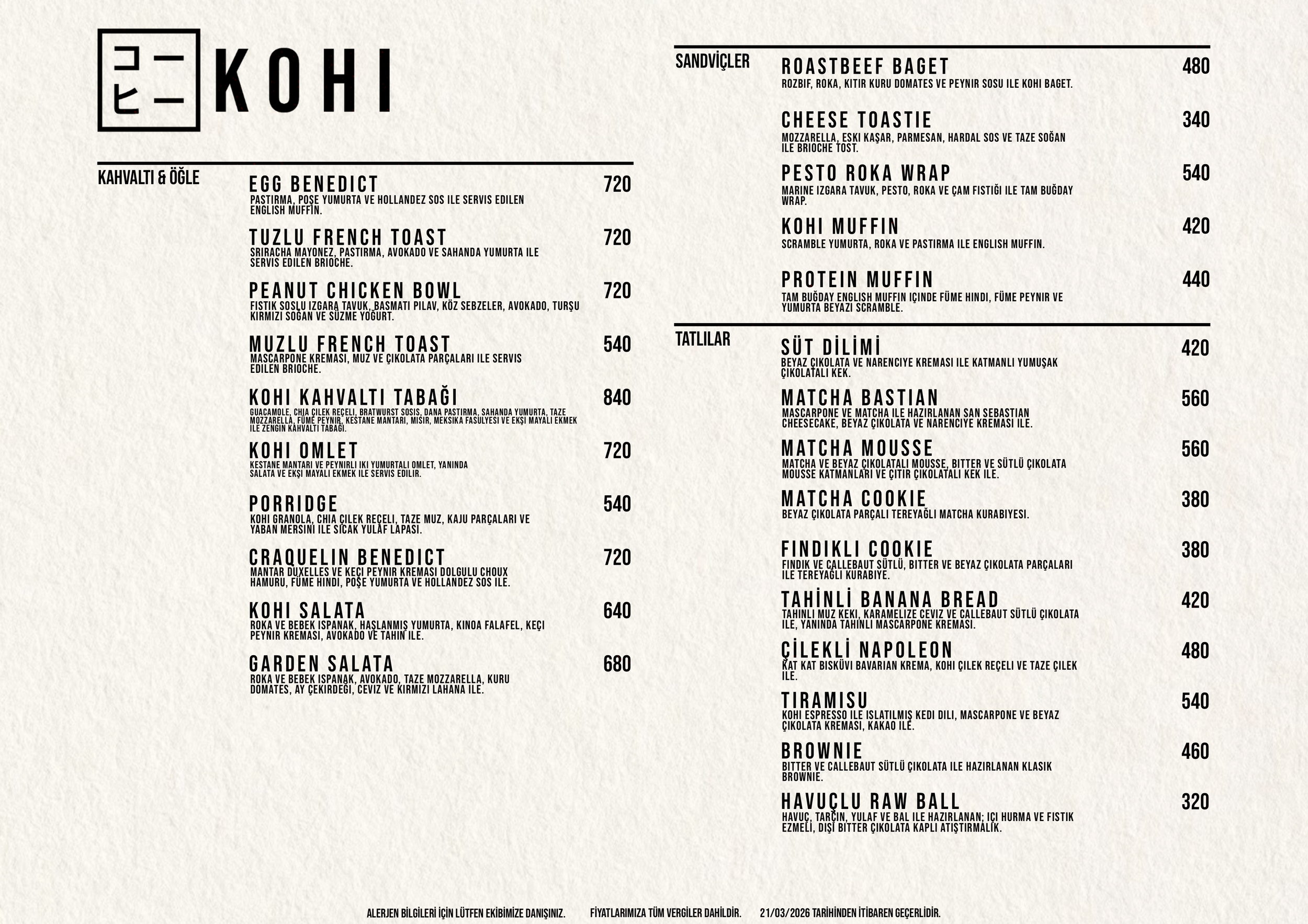 English Menu